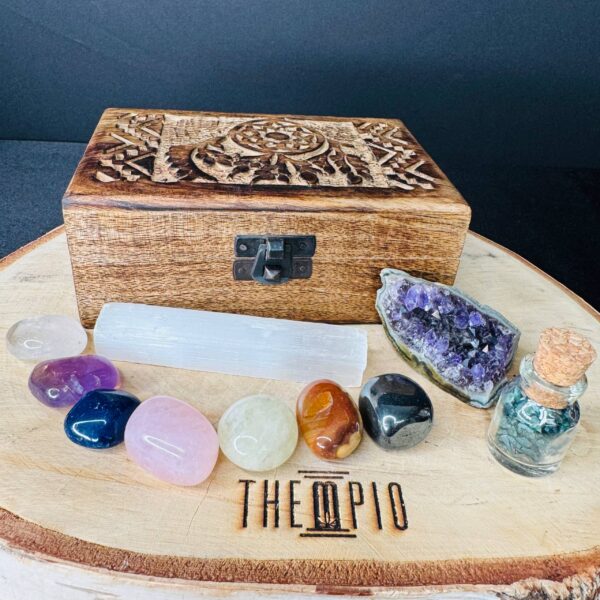 Vi propongo questo set all’interno di un sacchettino su cui abbiamo stampato (con le nostre mani, grazie a un timbro speciale) la geometria sacra del Toroide,