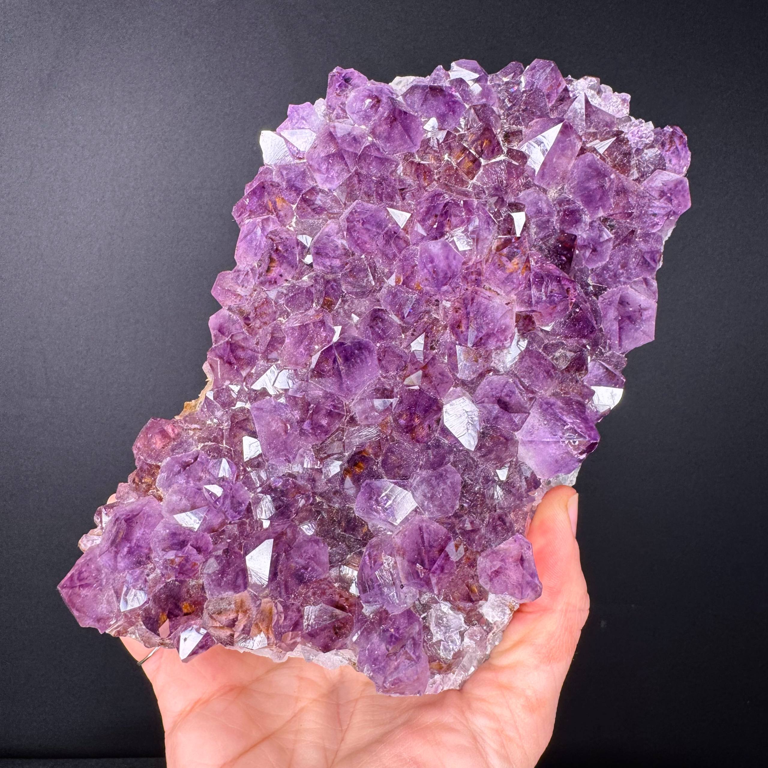 La Drusa di Ametista con Ematite è un incontro tra forze diverse che non si escludono, ma si completano.