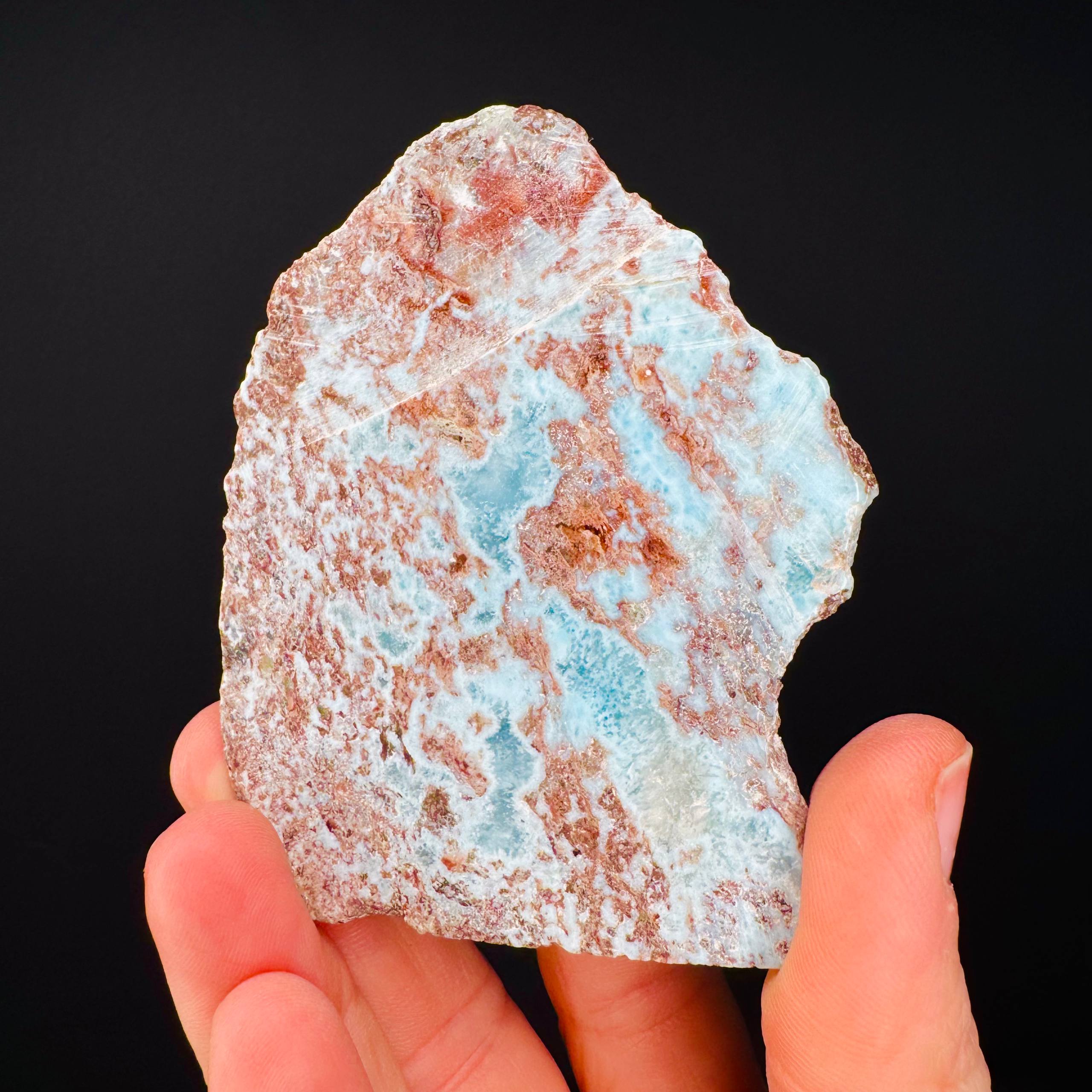 Il Larimar Rosso è un esemplare raro in cui la qualità tipica del larimar, legata alla leggerezza e all’apertura, incontra una presenza cromatica più profonda e inattesa. Questa combinazione crea un equilibrio tra fluidità e radicamento, tra movimento e stabilità, rendendolo un cristallo particolarmente interessante nei momenti di trasformazione.