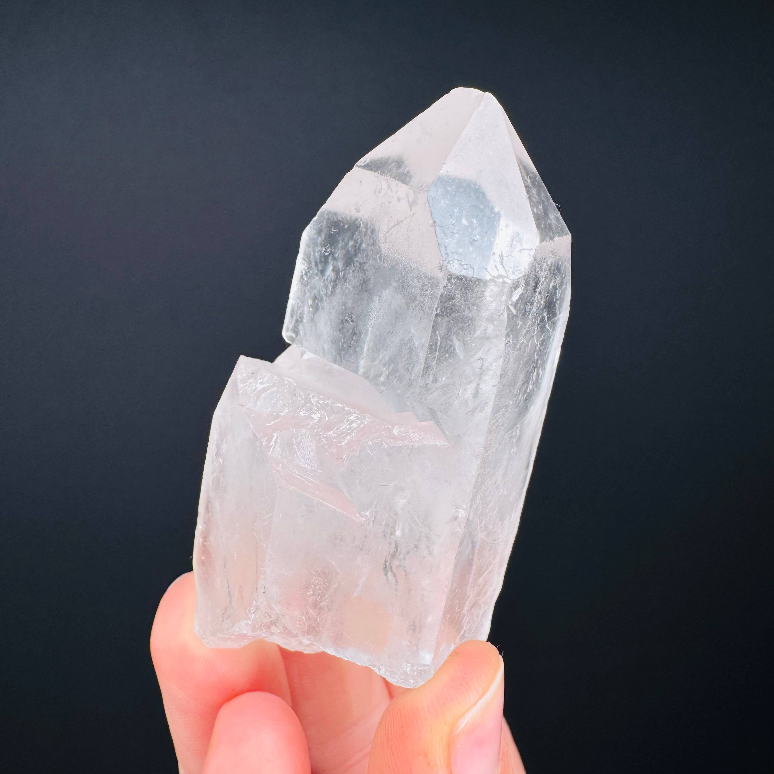 Il Quarzo Ialinocon interferenze di crescita è una varietà particolare di quarzo ialino in cui la struttura cristallina mostra segni evidenti del proprio processo formativo.