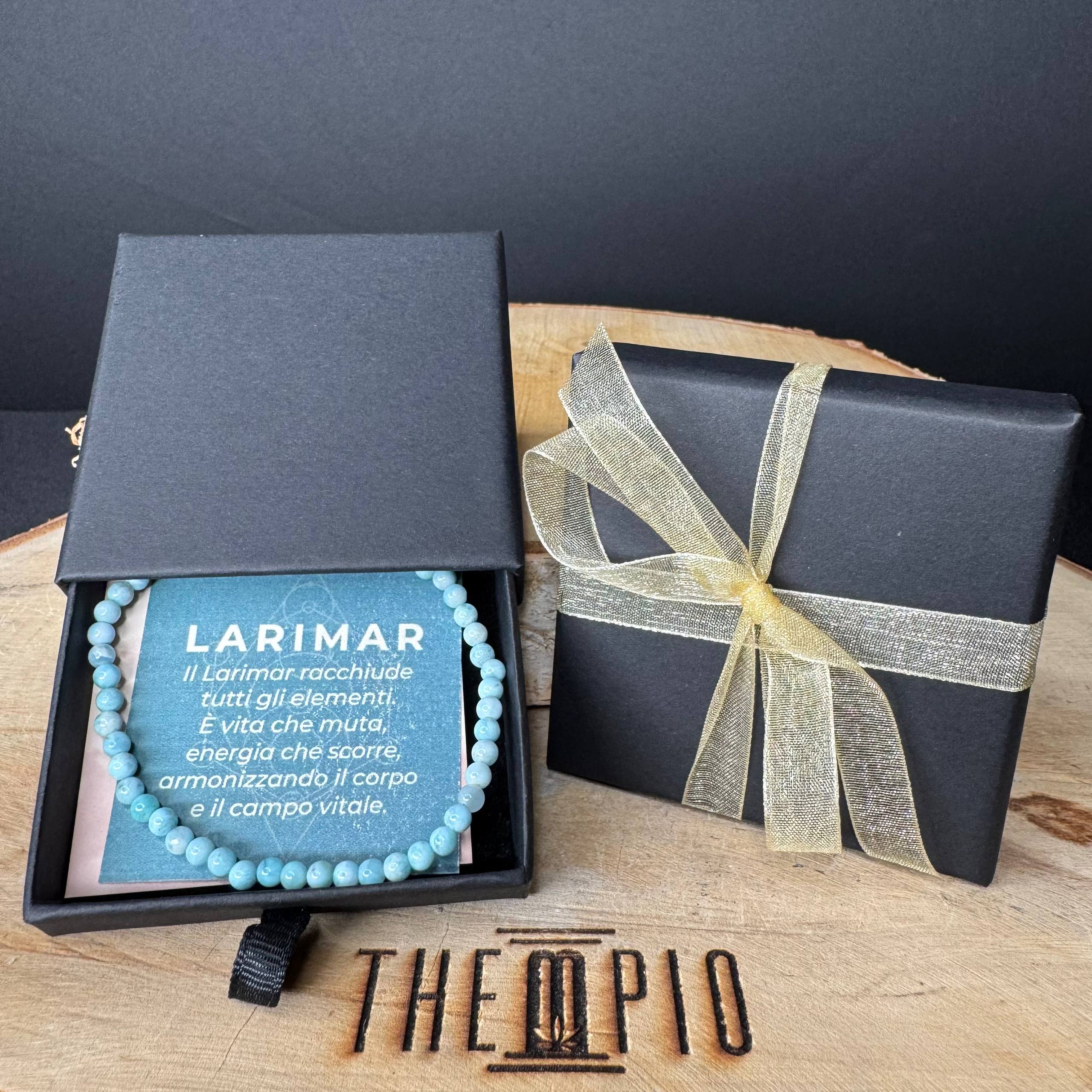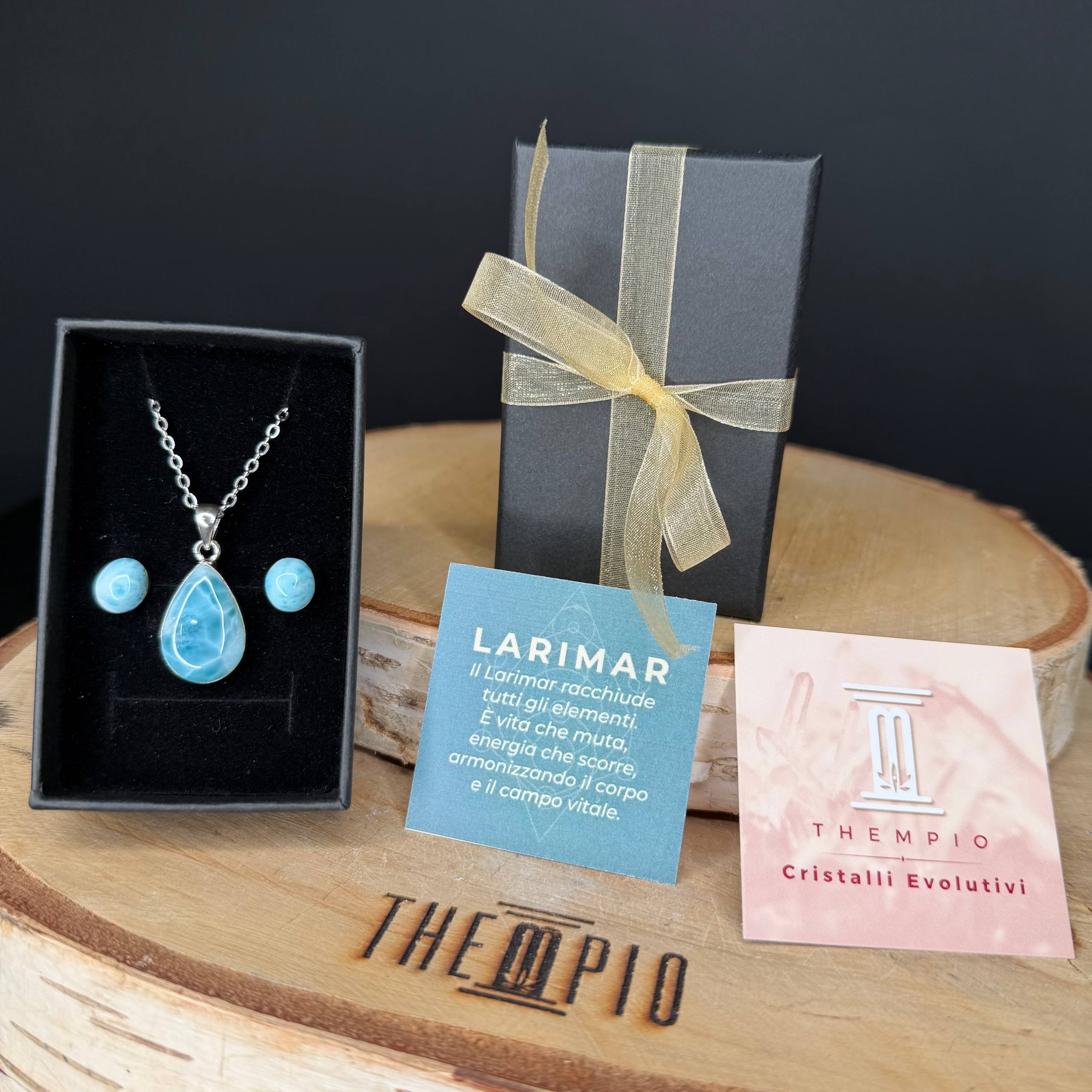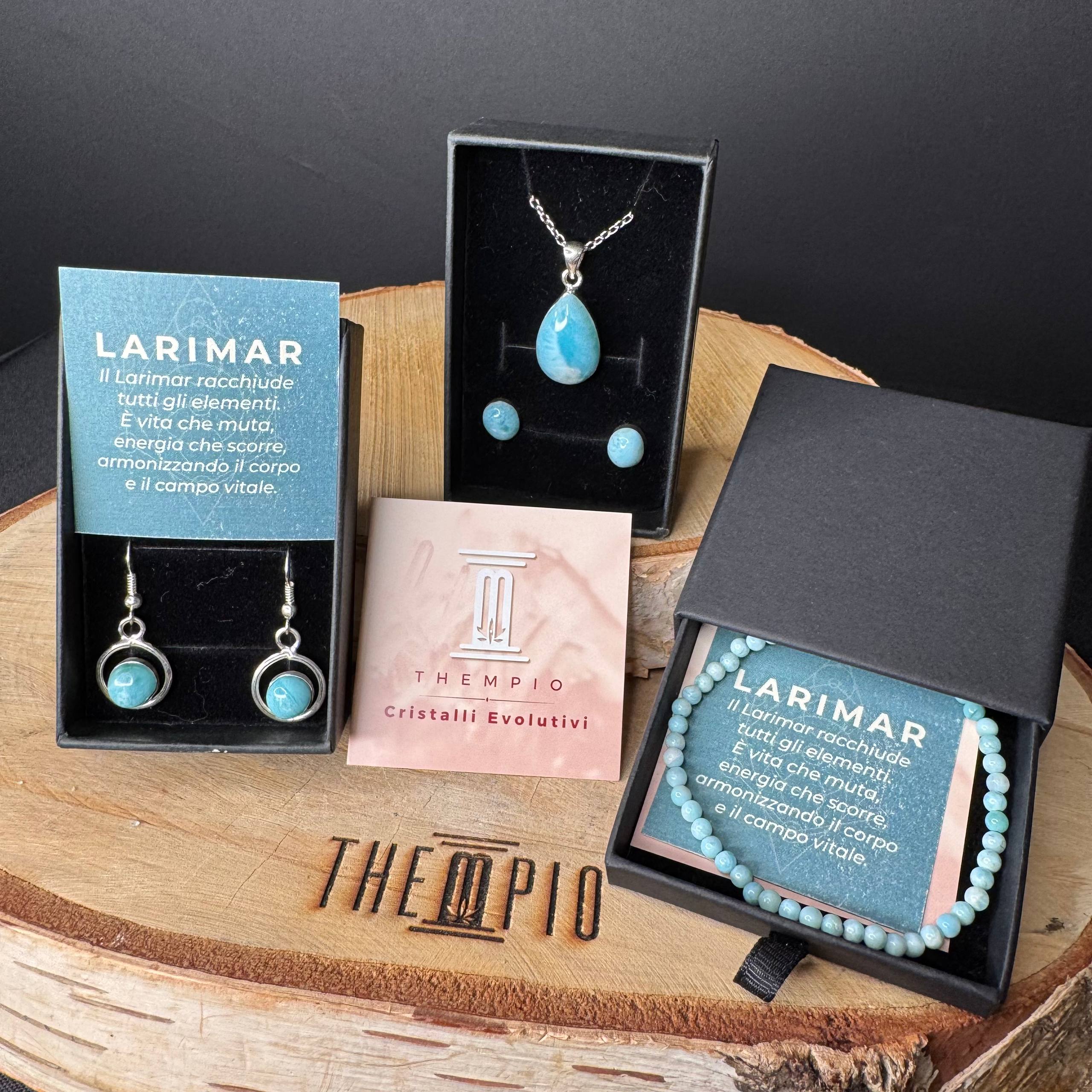 Ogni creazione custodisce un frammento di magia antica e si illumina grazie alla presenza di un cristallo unico: il Larimar.